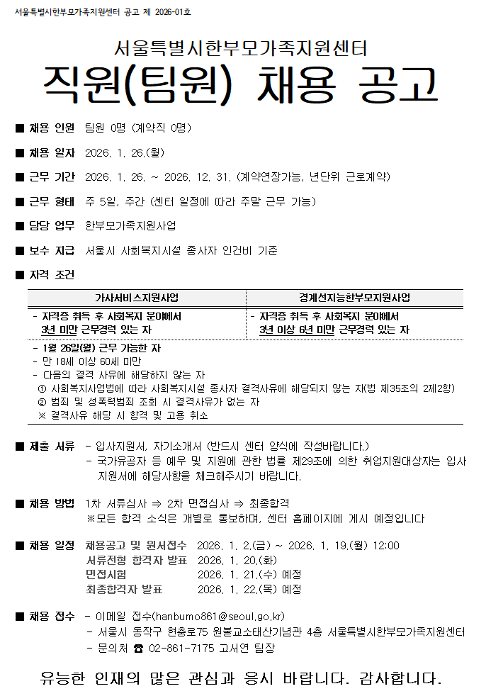 서울특별시한부모가족지원센터 직원 채용 공고