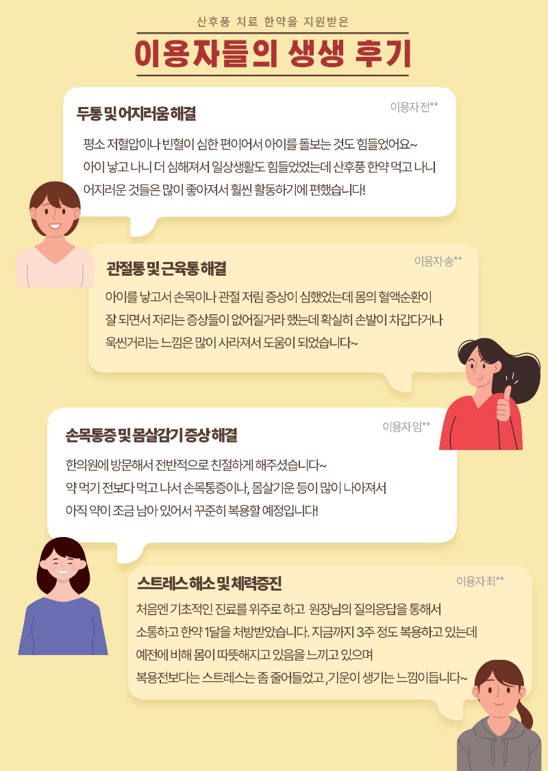 우리센터에서는 출산 후 건강회복이 필요한 한부모에게 산후풍치료한약을 지원합니다.
