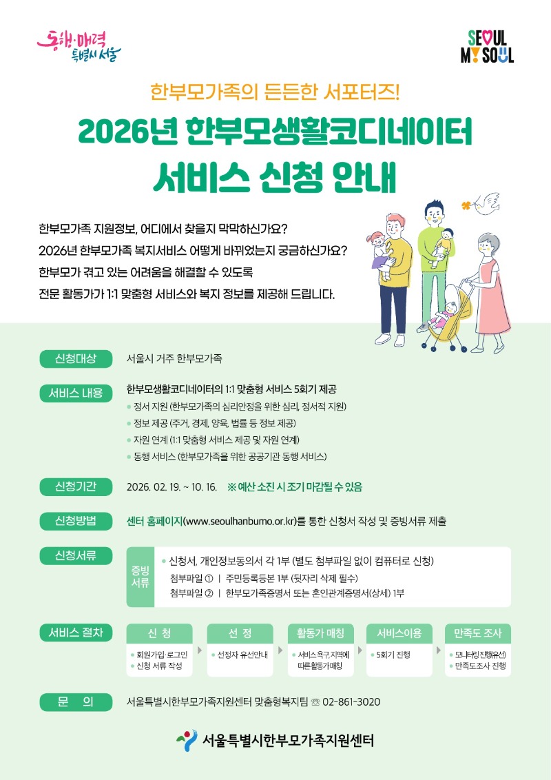 2026년 한부모생활코디네이터 서비스를 아래와 같이 안내드립니다.