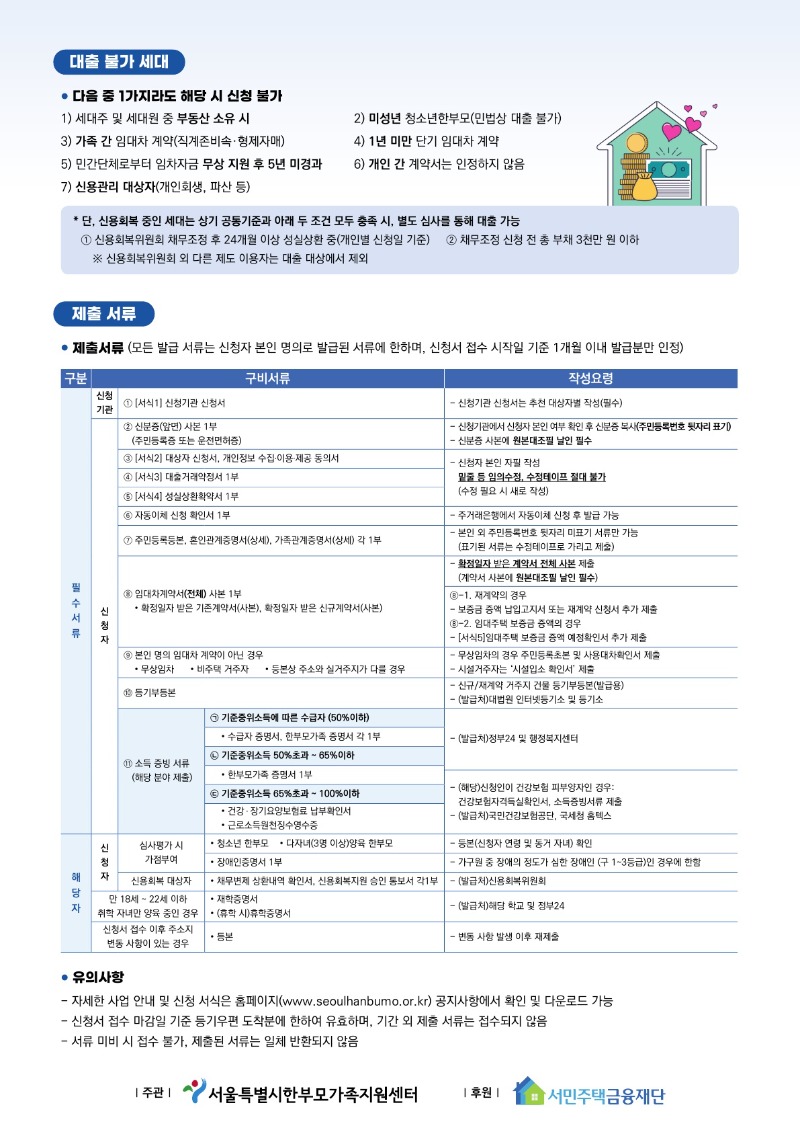 2026년 1차 한부모가족 주거자금 소액대출 연계사업 「나는 가장이다」의 대상자를 모집합니다.