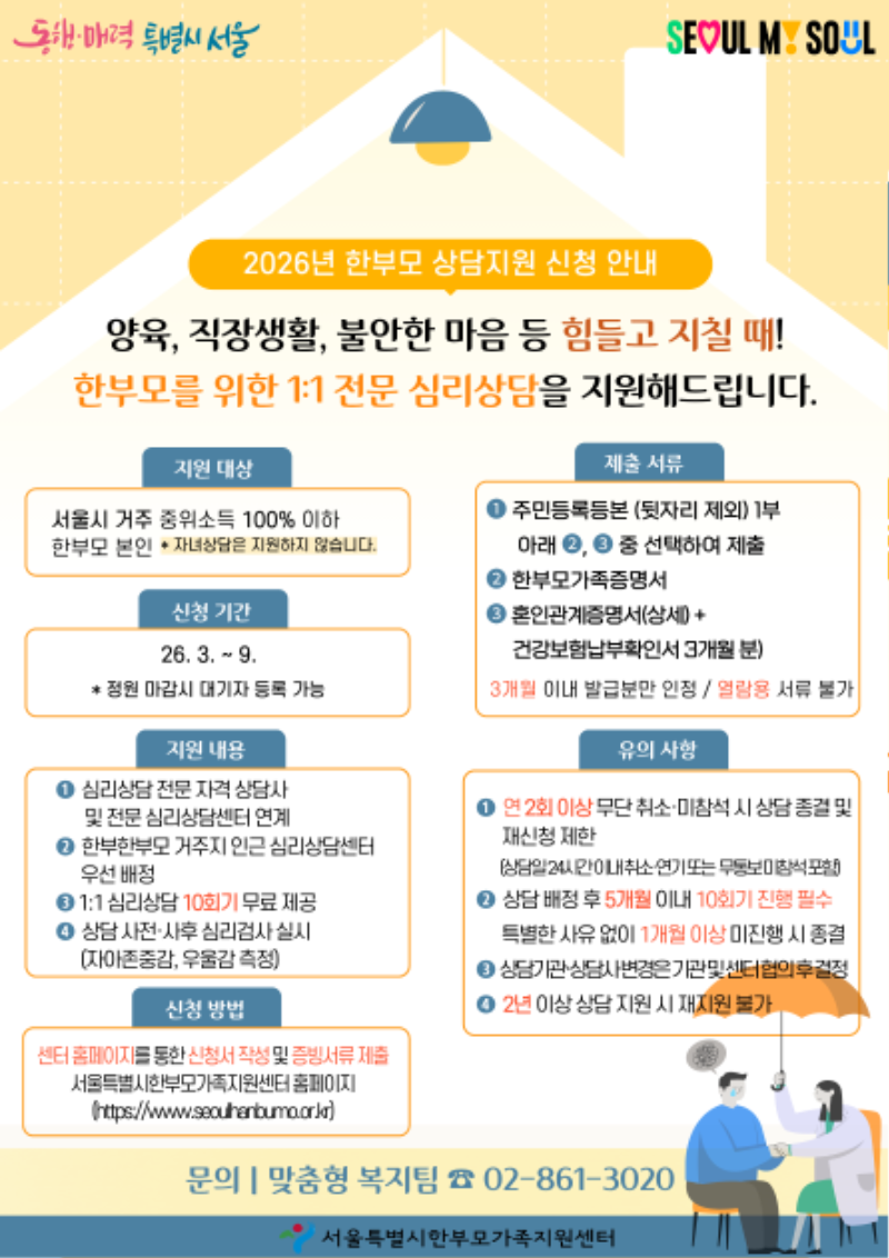 2026년 한부모 상담지원사업을 아래와 같이 안내드립니다.