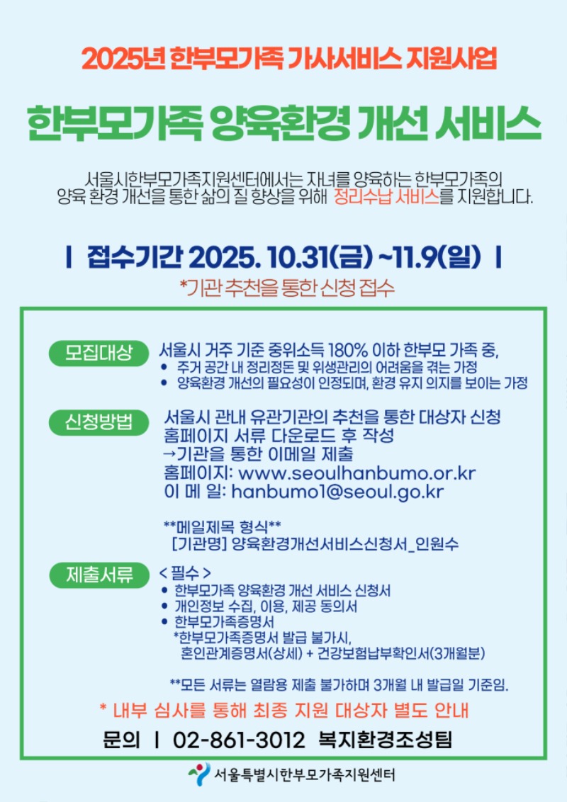 2025년 한부모가족 양육환경 개선 서비스 신청 안내