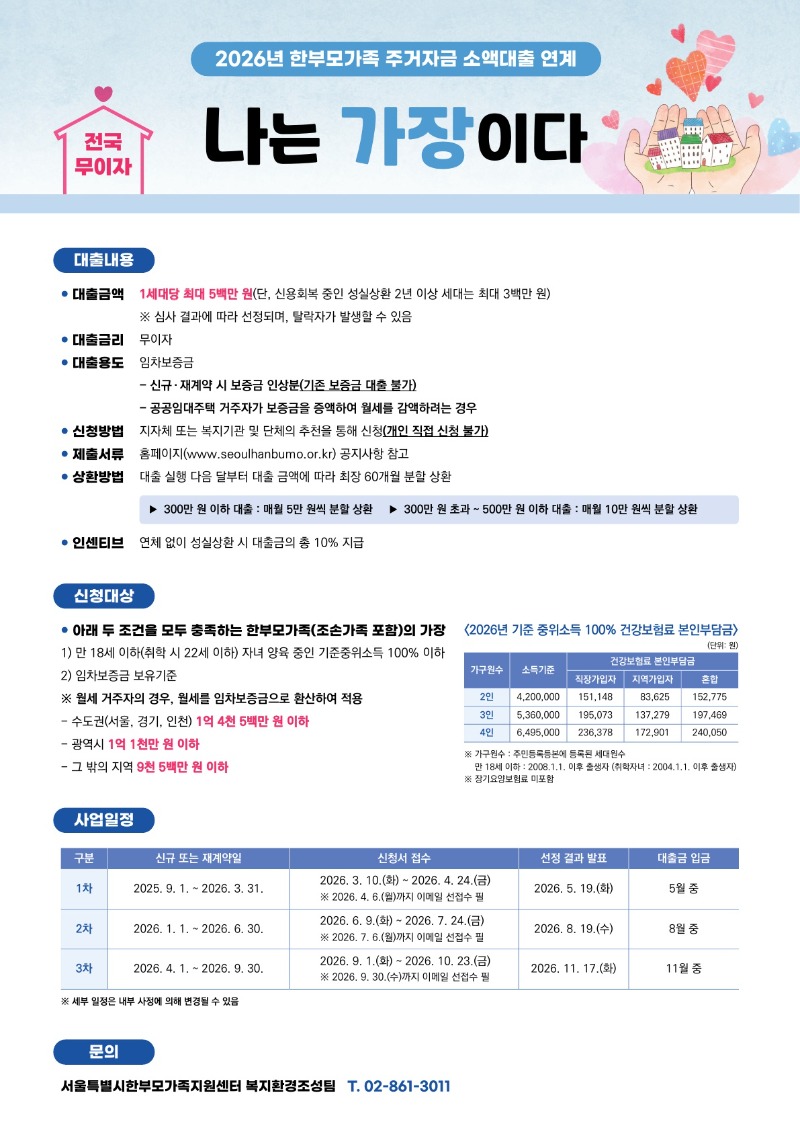 2026년 1차 한부모가족 주거자금 소액대출 연계사업 「나는 가장이다」의 대상자를 모집합니다.